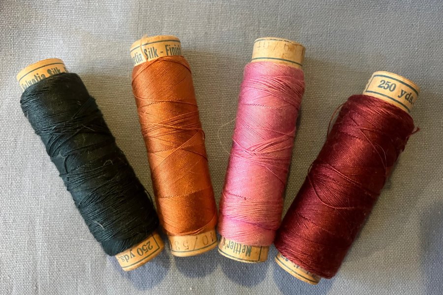 Enl bilder. Det står det Mettlers Helvetia Silk och 250 yards på alla. Markering från vänster till höger: 40/690, 40/530, 40/611 och 40/535. Det är taget på alla.