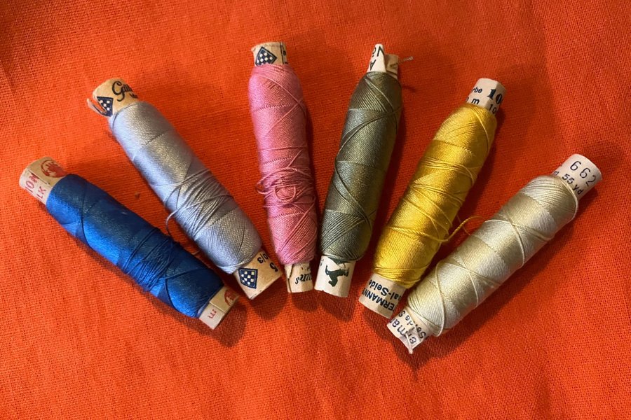 Enl bilder. Flera står det Gütermann och 50 meter på. Det står 100/3 på alla utom den gröna men det är nog samma sort. Det är taget aningen eller inget på dem.