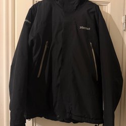 En riktigt bra skidjacka med snölås inuti, förböjda ärmar, elastiska muddar i ärmslut som skyddar mot snö och kyla, dragkedjor för ventilation under armarna, ficka för liftkort mm. Luvan kan dras upp över hjälmen.
