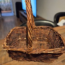 En vacker korg, perfekt för förvaring eller dekoration. Den har ett praktiskt handtag som gör den lätt att bära. Mindre bruksslitage kan förekomma.
