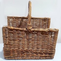 Vintage Vacker Vedkorg Tidningsställ i rotting-flätad Korg med Handtag