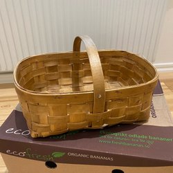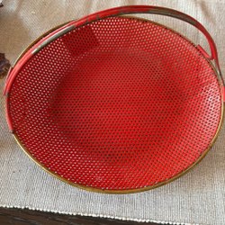 En röd korg, perfekt för förvaring eller dekoration.