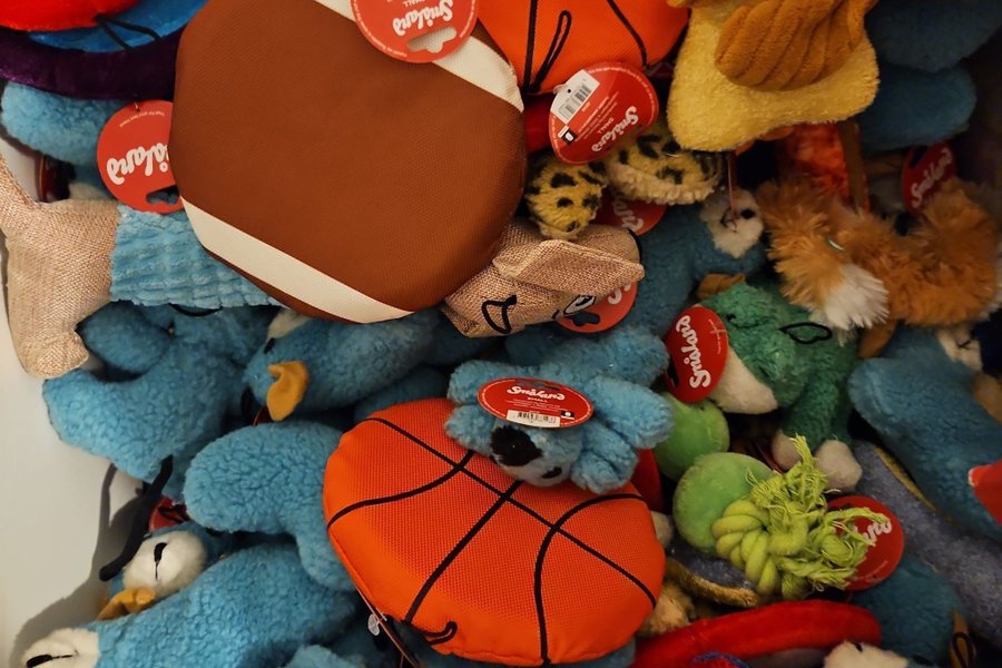 Ett sortiment av roliga leksaker för din hund. Inkluderar bollar, gosedjur och andra tuggleksaker från Småland.