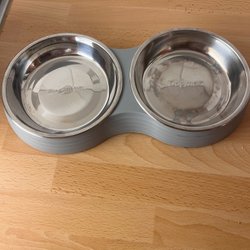 Vit matskål för katt. Något lutande och gummerad undersida för att den ska stå still
