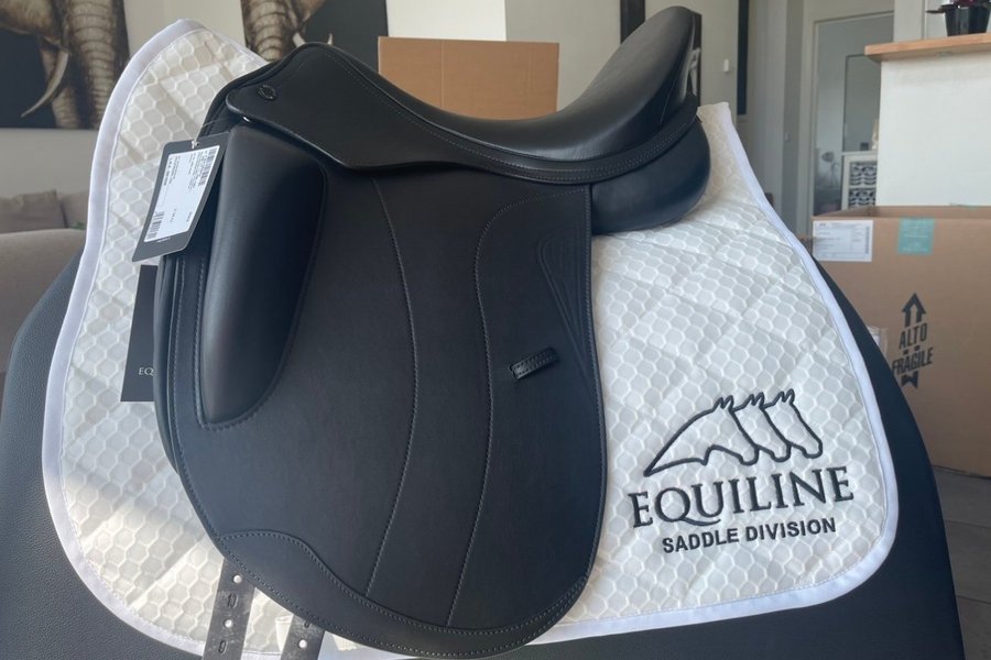 Svart dressyrsadel från Equiline, model E9. 17”, vid bom. Ullstoppad. Har använts som demosadel så är så gott som ny. Nypris 29.000kr. Går att prova sadeln i Skåne med omnejd men lånas ej ut på prov. Snabb och smidig affär prioriteras.