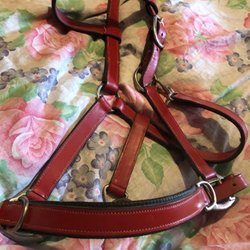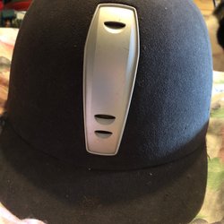 Schabrak i storlek GP FULL. Schabraket är grönt med en broderad häst på ena sidan. Undersidan är svart. Finns hår på