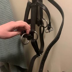 - Sidepull - de medföljande tyglarna fästes i ringarna vid nosbandet för att få en sidepulleffekt.