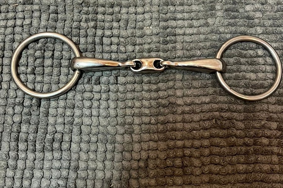 Ett tredelat tränsbett i metall med lösa ringar. Bettet är utformat för att ge en mjukare inverkan i hästens mun . Mått 13cm.