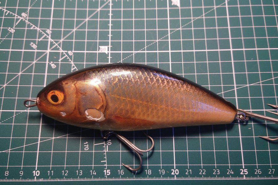 Storslalom.. Flytande, 15 cm, 100g. Samfrakt. Lacken chippad enligt foto.