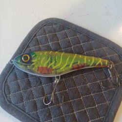 En Strike Pro Guppie JR i färgen CWC033. Längd: 110 mm, total längd: 176 mm, vikt: 70 g. Designad för att ge bra presentation under vattnet. Sänker sig för att nå djupare vatten. Passar för olika typer av fiske.
