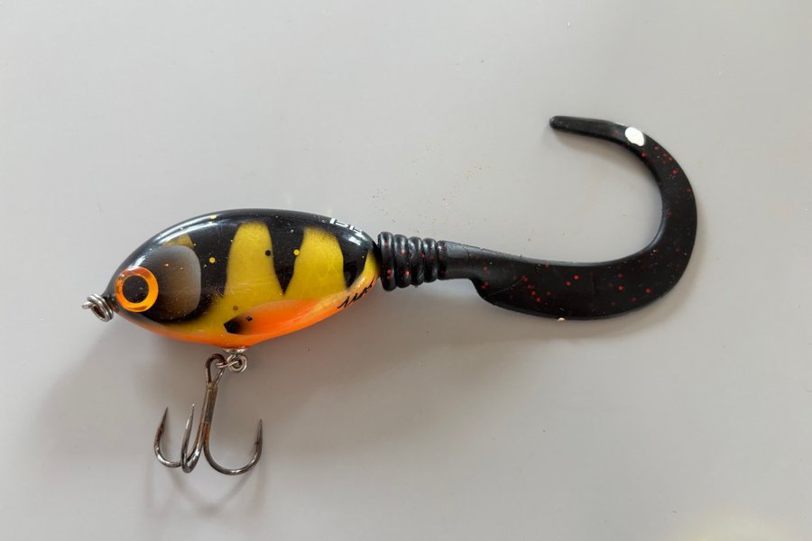 Kroppen är 8cm och med tail 17cm. Betet har en lång smal tail som ska trigga även den trögaste gädda till hugg.