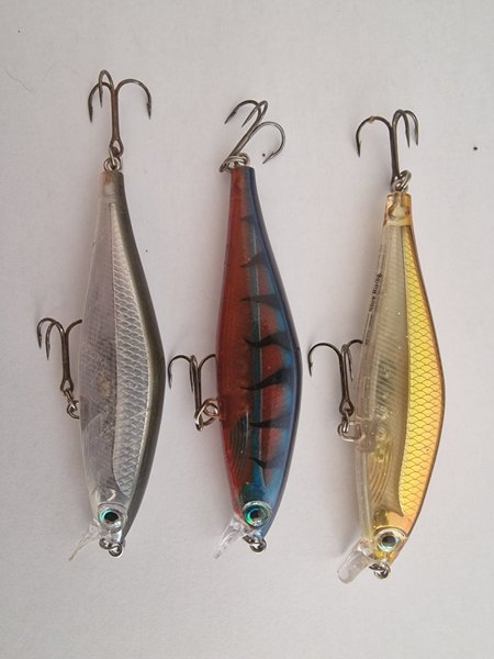2 stycken custom färger som är oanvända och en originalfärg som har lite bitmärken efter en gädda.