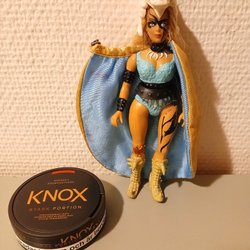 Battle Damage Skeletor actionfigur från Masters of the Universe. Märkt Mattel 1981/1983 (USA). Inkluderar ett svärd men saknar sin stav. Fint skick, finns lite småskav, bröstfunktion fungerar