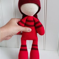 Helt ny kanin, virkad av mig i 100%ekologisk bomull i brun och rosa. Hon är 39cm lång från öra till tå och stoppad med allergitestat vadd.