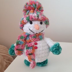 Söt enhörning virkad av mig i mjukt garn. Perfekt som gosedjur eller dekoration. Även lugnare lek. Den är vit har en rosa mule, en gyllene horn virkad i guldgarn och en färgglad man och svans. Rosa säkerhetsögon. 26 cm.