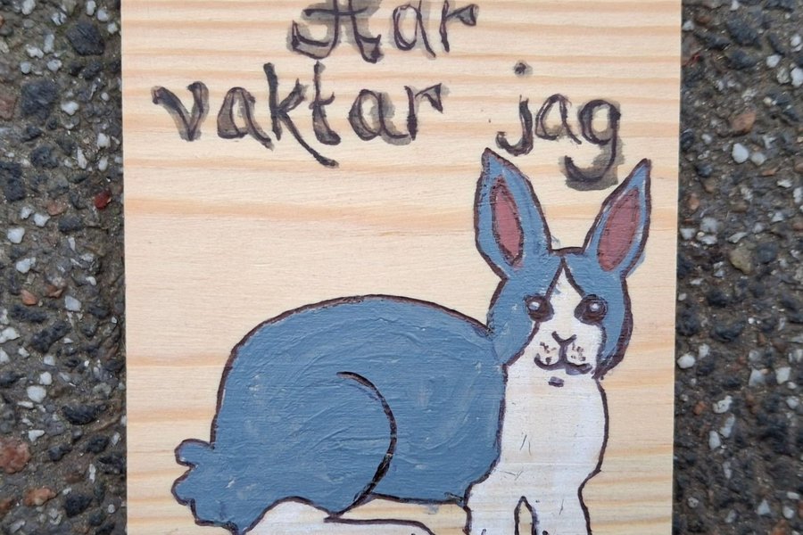 Handmålad kaninvarningsskylt
