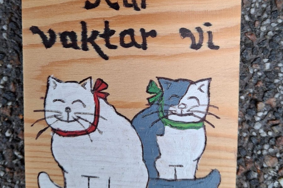 Handmålad kattvarningsskylt