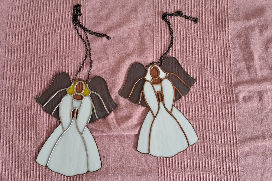 2 vackra, dekorativa glasänglar i Tiffanystil.