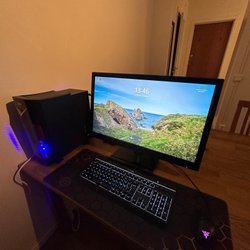 Säljer en gaming dator. Den har ett Cooler Master chassi och en MSI grafikkort. Operativsystemet är Windows.