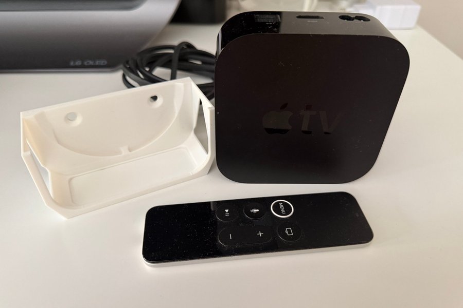 Apple TV med fjärrkontroll och väggfäste. Levereras komplett och fabriksåterställd.