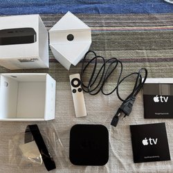 Apple TV A1469 (3rd generation) with remote control and power cable. In good used condition, fully functional. Only minor cosmetical marks.