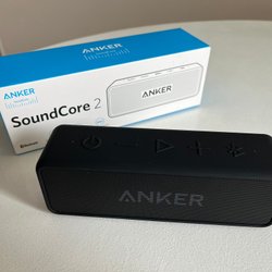 Apple AirPods 2 med lightning-laddningsetui. Observera att batteriet är dåligt och batteribyte rekommenderas. Båda hörlurar ansluter till enheten, men vänster hörlur slutar fungera efter några sekunder. Med höger hörlur går det att lyssna på musik i ca 2,5 timmar.
