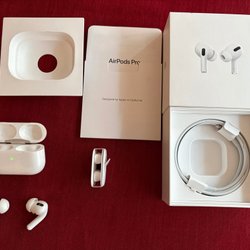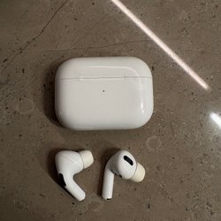 AirPods Pro, använda med slitage men fungerar mycket bra.