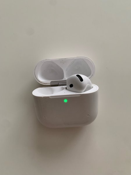 Airpods 4 säljes, slarvat bort den vänstra så endast den högra som säljes, syns på bild.
