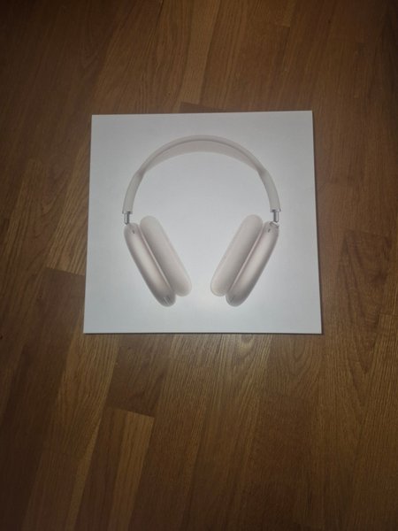 Apple AirPods Max i färgen silver. Hörlurarna har en stilren design och är bekväma att bära. De är av over-ear-modell.