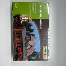 Vändskiva 6388, motordrivning 6389, reglage 6382, extra utfarter 6383 x 6, lokstall 6384 och lokstall 6331. Har gått igenom det stora lokstallet, saknar vad jag kan se ett par glas rutor men kan inte till 100% garantera att det är komplett. lilla lokstallet är 100% komplett. Vändskivan med tillbehör är nytt aldrig använt.