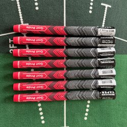 Säljer ett 7-pack Golf Pride MCC Plus4. Den nedre delen är grövre och uppmuntrar till ett lättare grepp som ökar kraften i svingen. Den nedre delen är tillverkat i ett mjukt gummi som ger optimal känsla. Den övre delen är tillverkad i mjukt gummi med Cord som ger optimalt grepp och stabilitet. Från asien.