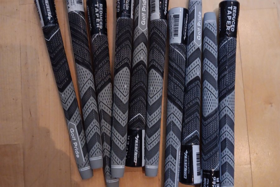Golf Pride MCC Plus 4 golfgrepp. Dessa grepp är designade för att ge en förbättrad känsla och kontroll under spelet. De har en reducerad taper för en jämnare känsla i händerna.