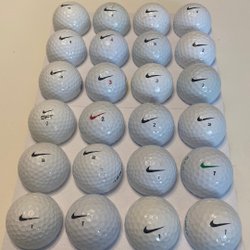 Ett parti med 24 Nike golfbollar. Bollarna är av olika modeller och nummer. Samfrakt går bra vid flera köp.