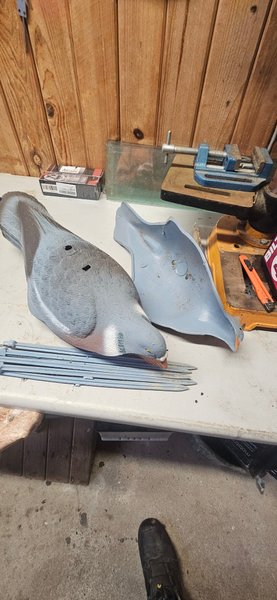 6 st lockfåglar av plast med tillhörande stänger. Passar för användning vid jakt. Enkel att sätta upp och ta ner. 6 st stänger till
