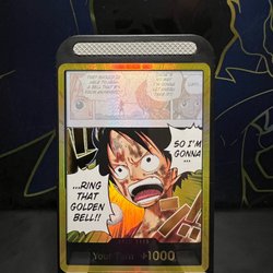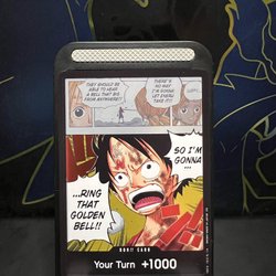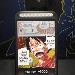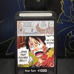 Kort fra One Piece Card Game. Dette er et DON!! kort med effekten 'Your Turn +1000.