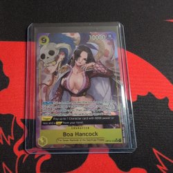 Säljer One Piece-kort. Korten är från olika serier och inkluderar karaktärer som Boa Hancock, Vergo, Foxy, Rosinante & Law, Trafalgar Law, Mr.2 Bon.Kurei (Bentham), Crocodile, X.Drake, Kiku, Sugar, Roronoa Zoro, Carrot, Jinbe, Absalom, Chaka & Pell, och Mihawk.