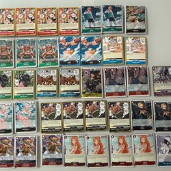 Säljer en samling One Piece-kort. Korten är baserade på karaktärer och scener från den populära mangan och animen One Piece.