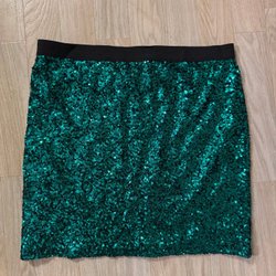 Svart kjol med ett leopardmönster i guld. Kjolen har en kort passform och en dold dragkedja baktill. Stl 40, passar M till liten L. Superfint skick.