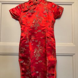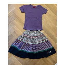 Orange kjol med rött blommönster och rosa detaljer i midjan. Kjolen har en tunn underkjol och ett vackert fall. Dragkedja bak.