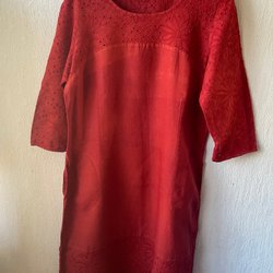 En storlek, passar nog storlek 38-44, mycket flexibel. Hela kjolen är i 100 % bomull.