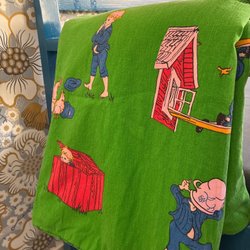 Marimekko liknande bomull tyg och design. Gissar att den är finsk design ;)