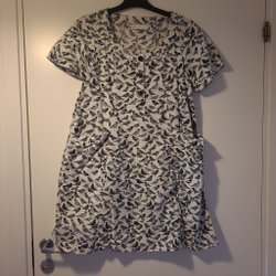 Svart kjol med ett blommigt mönster i rosa, vita och blå toner. Kjolen är av en rak modell och har en bekväm passform. Märke Amisu.