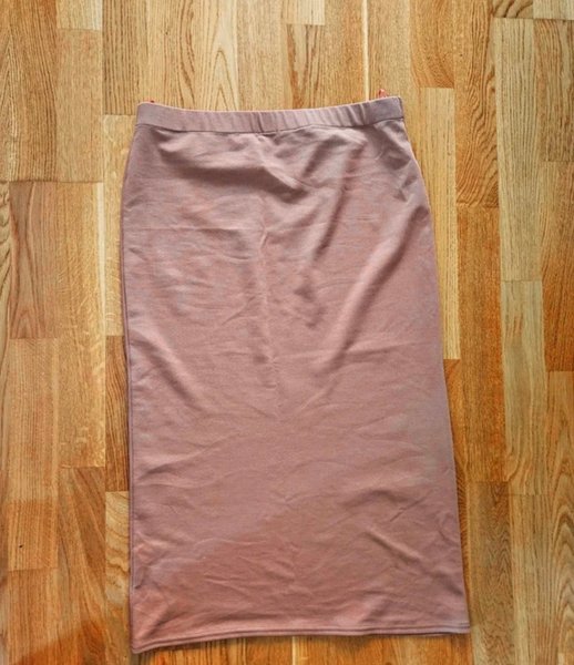 En figurnära kjol i en dämpad beige nyans. Kjolen har en enkel design och en bekväm, elastisk midja. Perfekt för både vardag och fest.