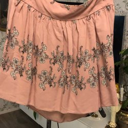 Rosa kjol med applikationer i form av blommor. Kjolen har ett elastiskt band i midjan.