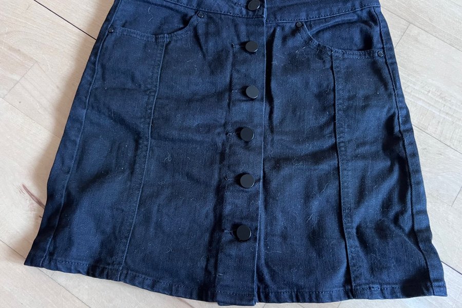 Sort denim nederdel med knapper foran