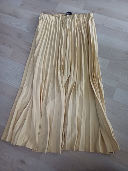 Lång, plisserad kjol med resår i midjan. Kjolen har en ljus, enfärgad design.