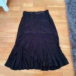 Kjol i blått med vitt blommigt mönster. Kjolen har en volangkant nedtill.