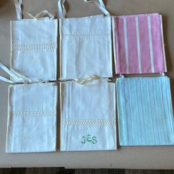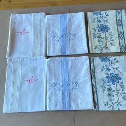 7st vita örngott i olika utföranden, vissa har dragkedja. De är lite missfärgade, men de är överlag i bra skick. Vi är djur- och rökfria i hemmet. Jag samfraktar gärna så passa på att kika på mina övriga annonser. Fråga mig om du undrar något.