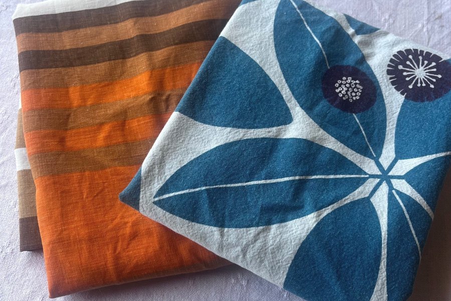 Ett med ränder och ett med blommotiv.