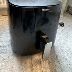 Airfryer i svart design. Denna modell har en digital display för enkel inställning av tid och temperatur. Perfekt för att tillaga en mängd olika rätter med mindre olja. Det är lite rostat jag har använd alltid papper vid användning. Det funkar jätte bra och är väldigt stor Airfryee.